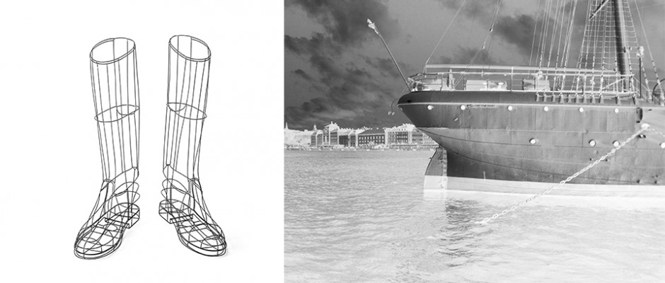 Raschkes sculptures in natural scale made of iron wire meet Hofsäss ghostly cityscapes in subtle black / white photography. Together they create unforgettable and remarkable impressions.